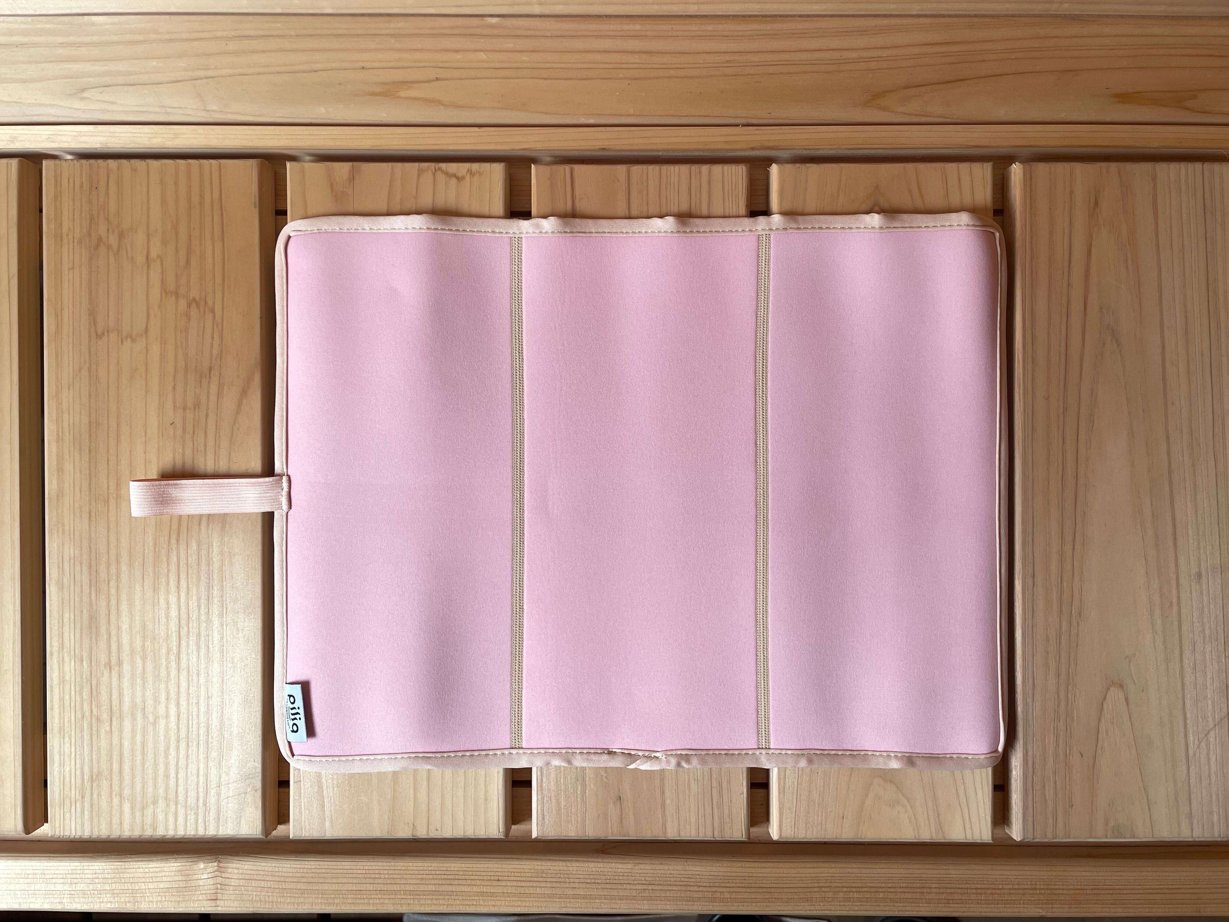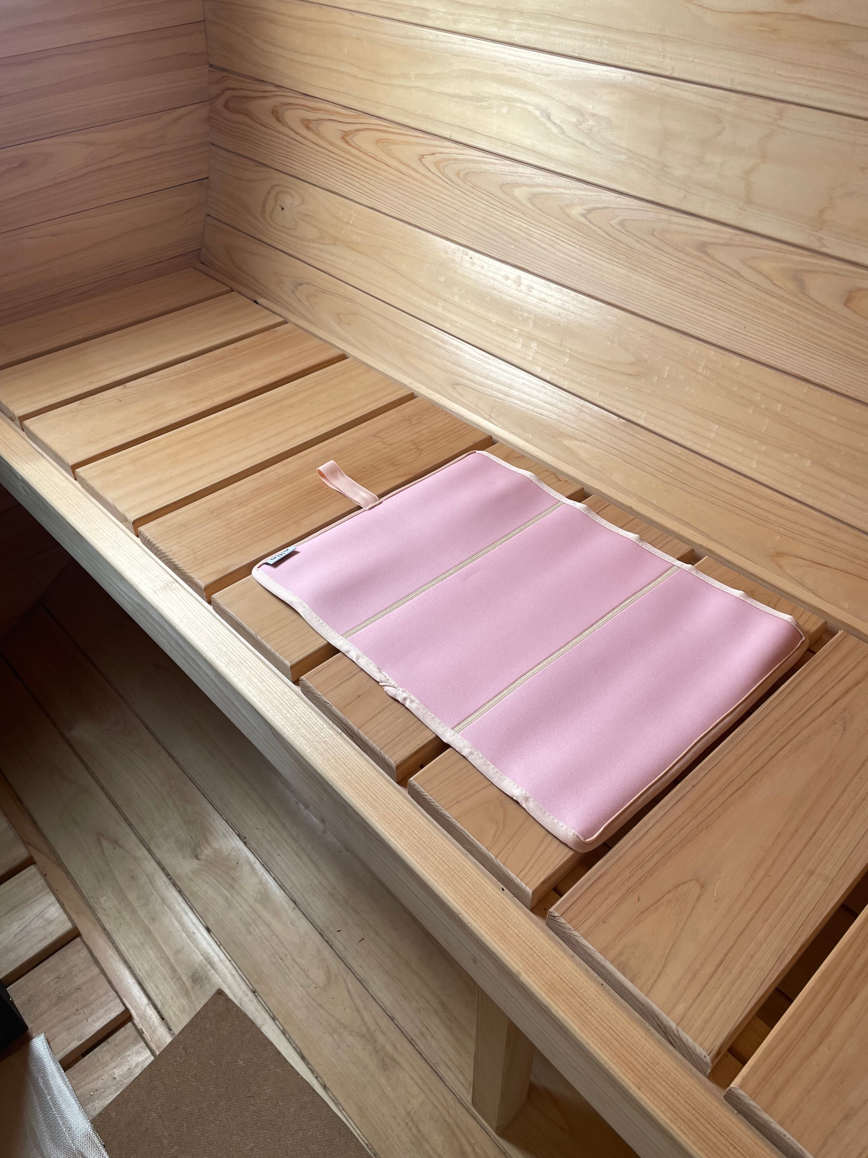 くるくると丸めて持ち運びにもコンパクトなサウナマット。パステルカラーが大人かわいく色でサウナ時間も楽しめそう。