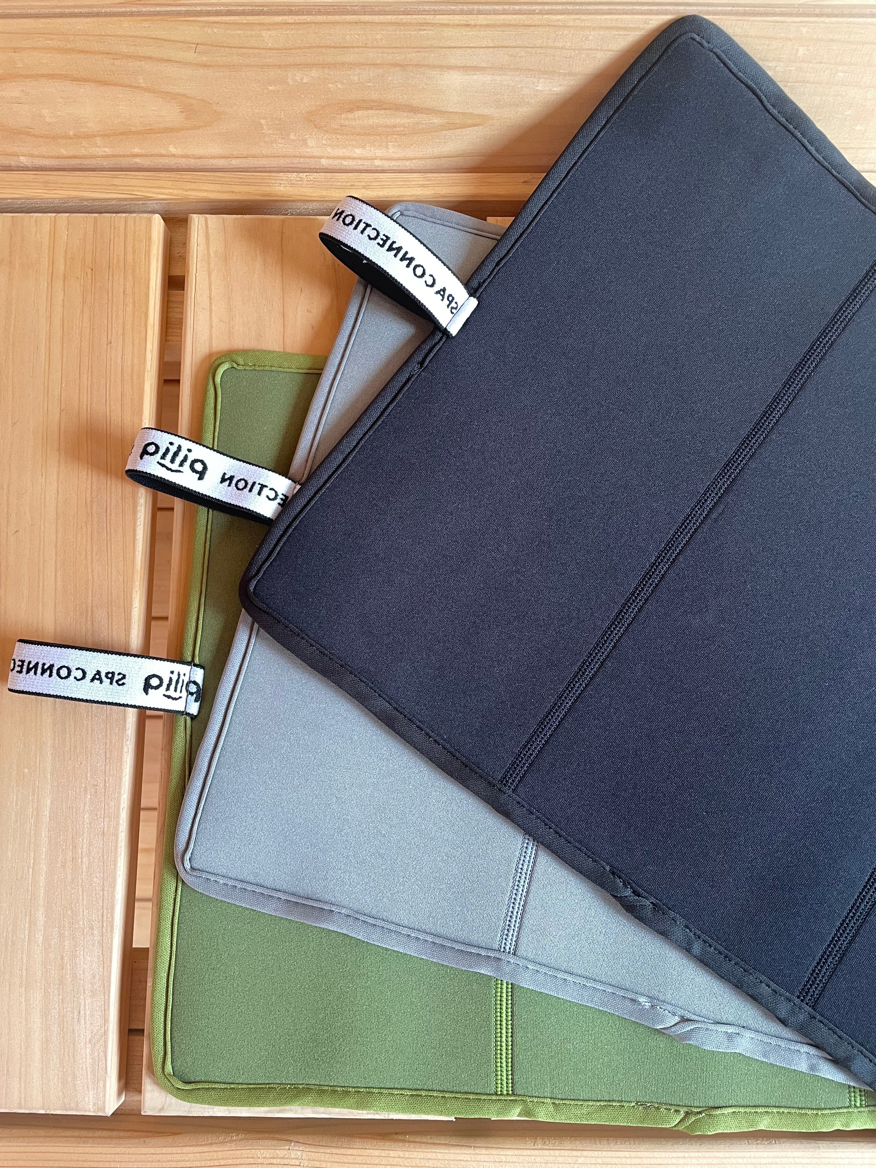 くるくると丸めて持ち運びにも便利なサウナマット。日常のサ活にはもちろん、サ旅にも最適なアイテムです!ネオプレーン素材を使用し、優れた耐久性と耐水性で、サウナと水風呂の往復時もべたつき知らず。これにより、より集中してサウナを楽しむことができます。ハットと一緒に贈り物にも最適です!