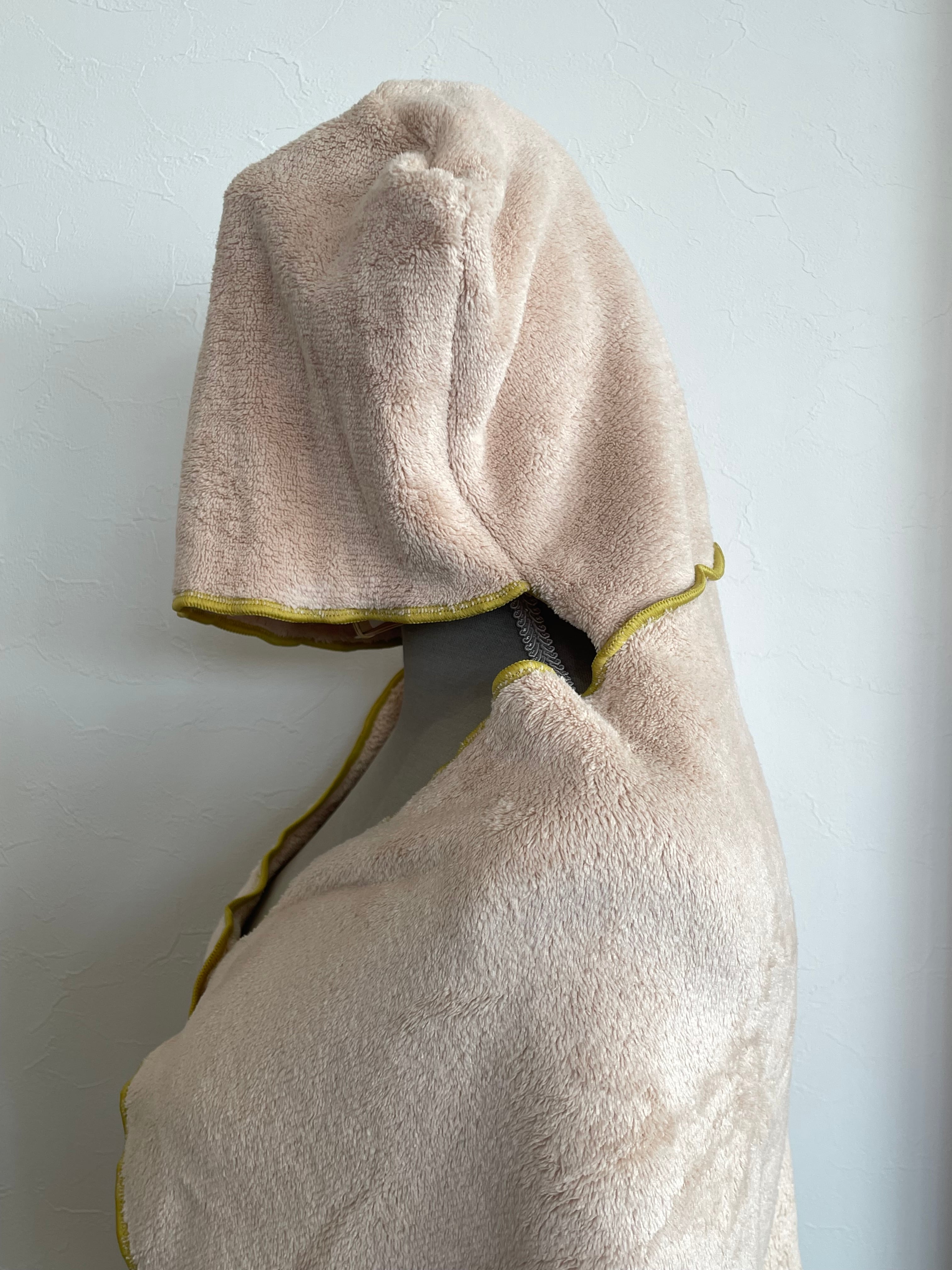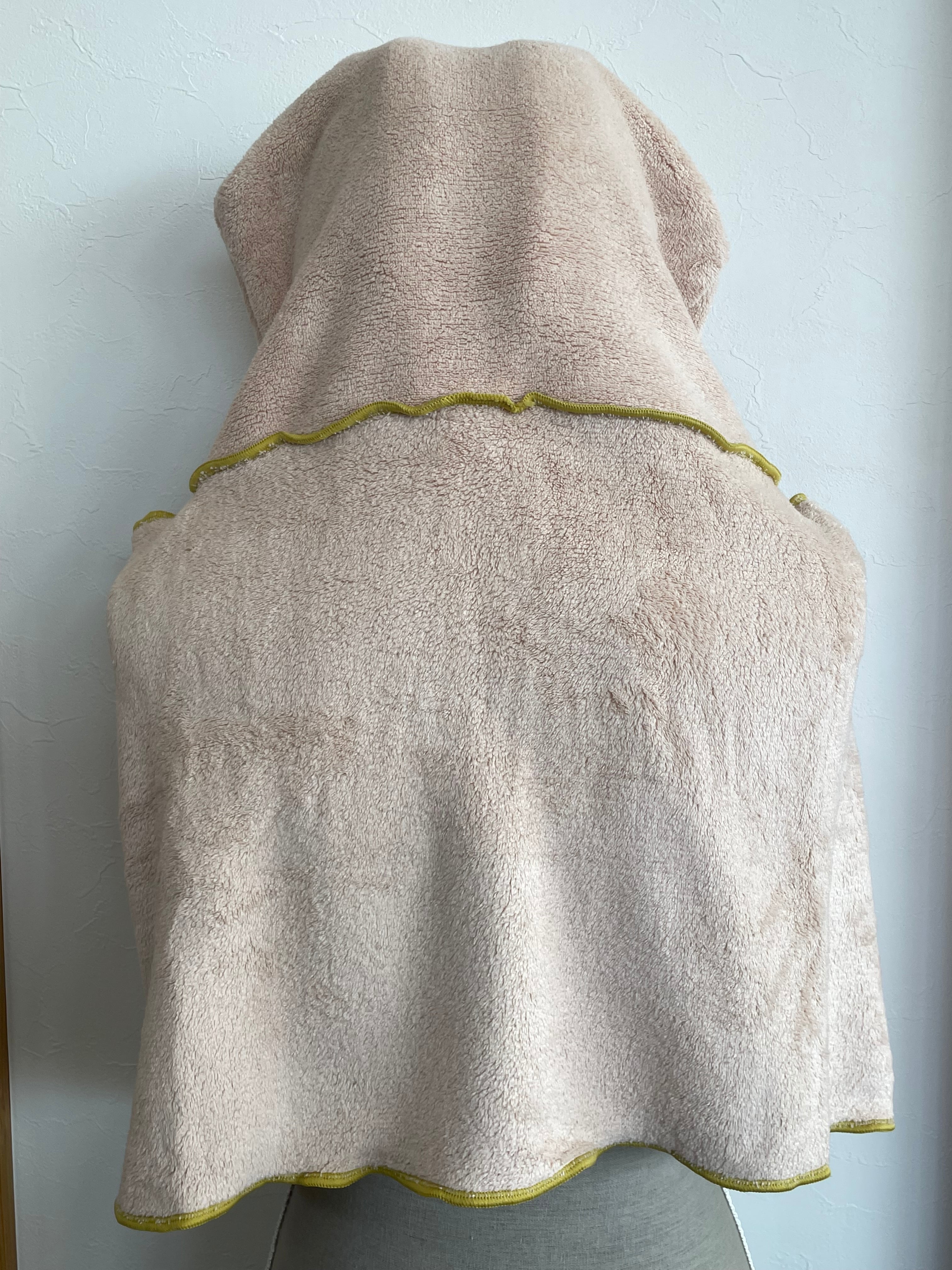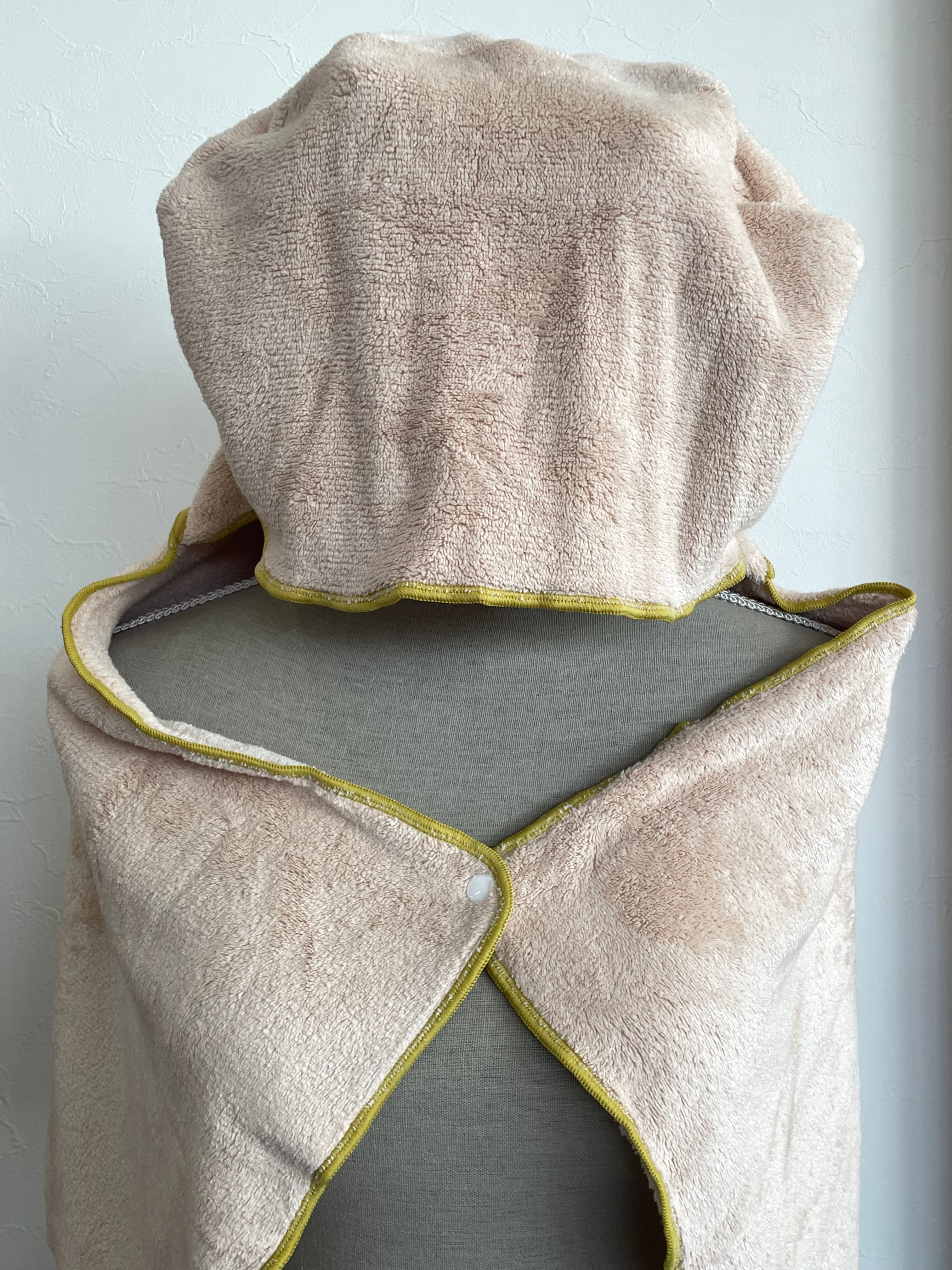 頭や肩を優しく包み込み、クールダウン後の時間やシャワー後に髪の毛を乾かすまでの間