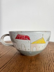 一つ一つ丁寧に手作業で作られたマグカップは、樹ノ音工房人気の可愛い家の絵柄が描かれており見ているだけで楽しくなります!たっぷりとしたサイズなのでカフェオレやスープにもお使いいただけます。
