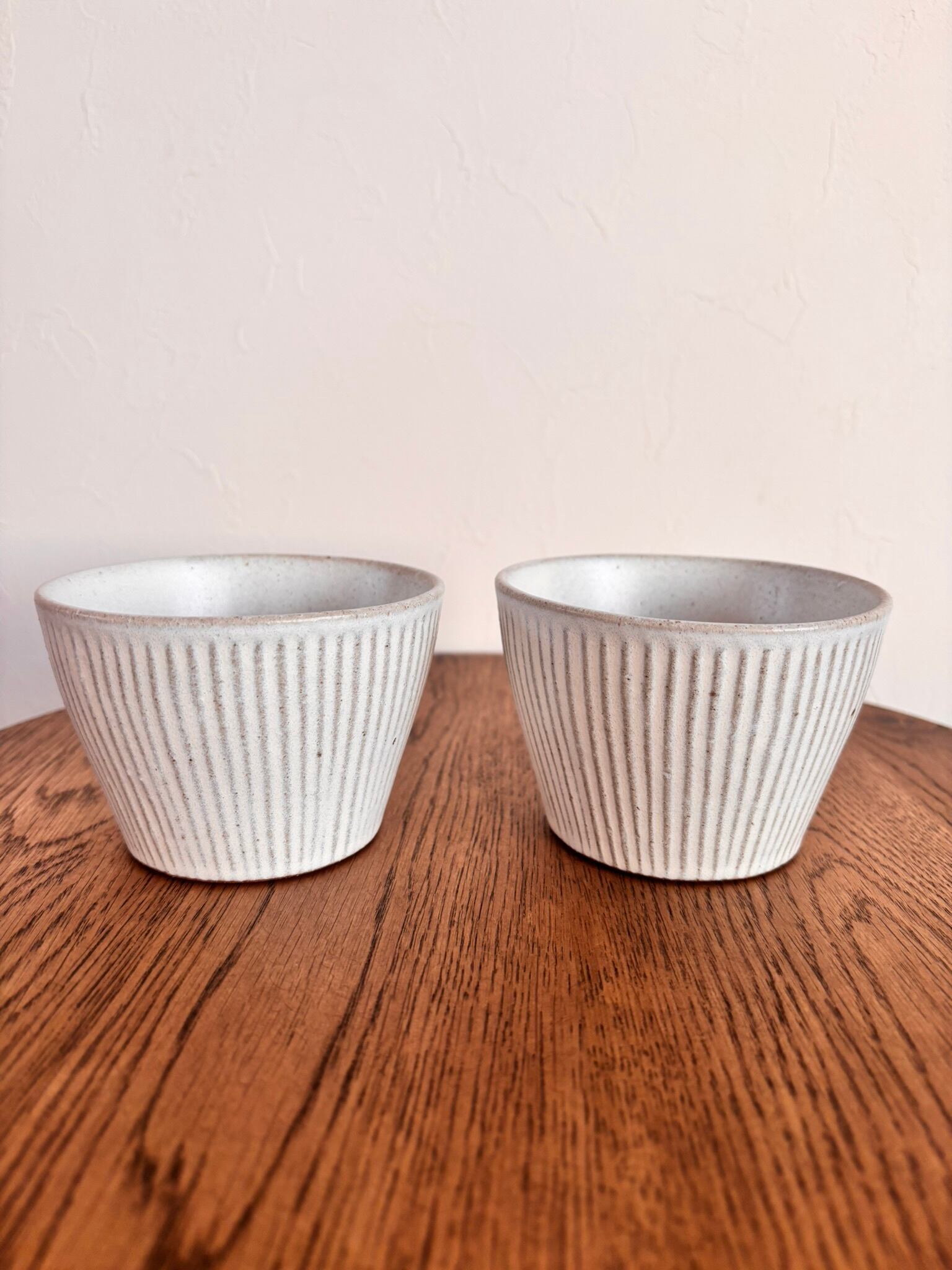 会津本郷焼の人気作家【樹ノ音工房】 白しのぎフリーカップです。この器は【しのぎ」という技法で1本1本彫られた丁寧な作りでシンプルながらオシャレでどんなお料理にもあう器です。