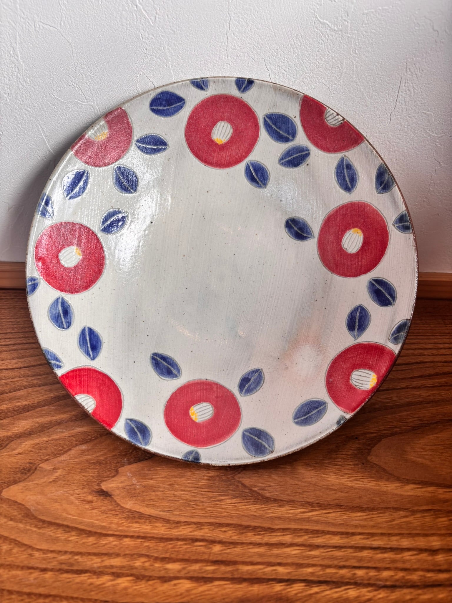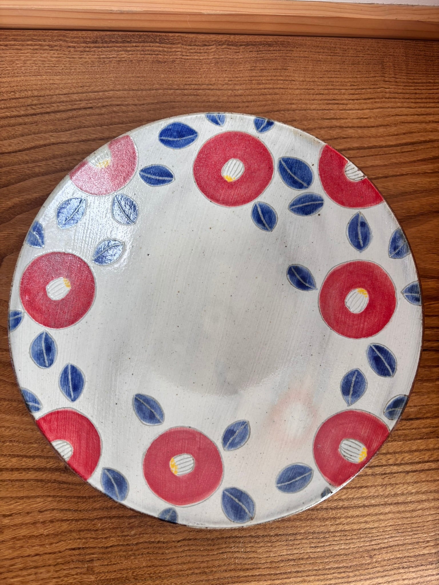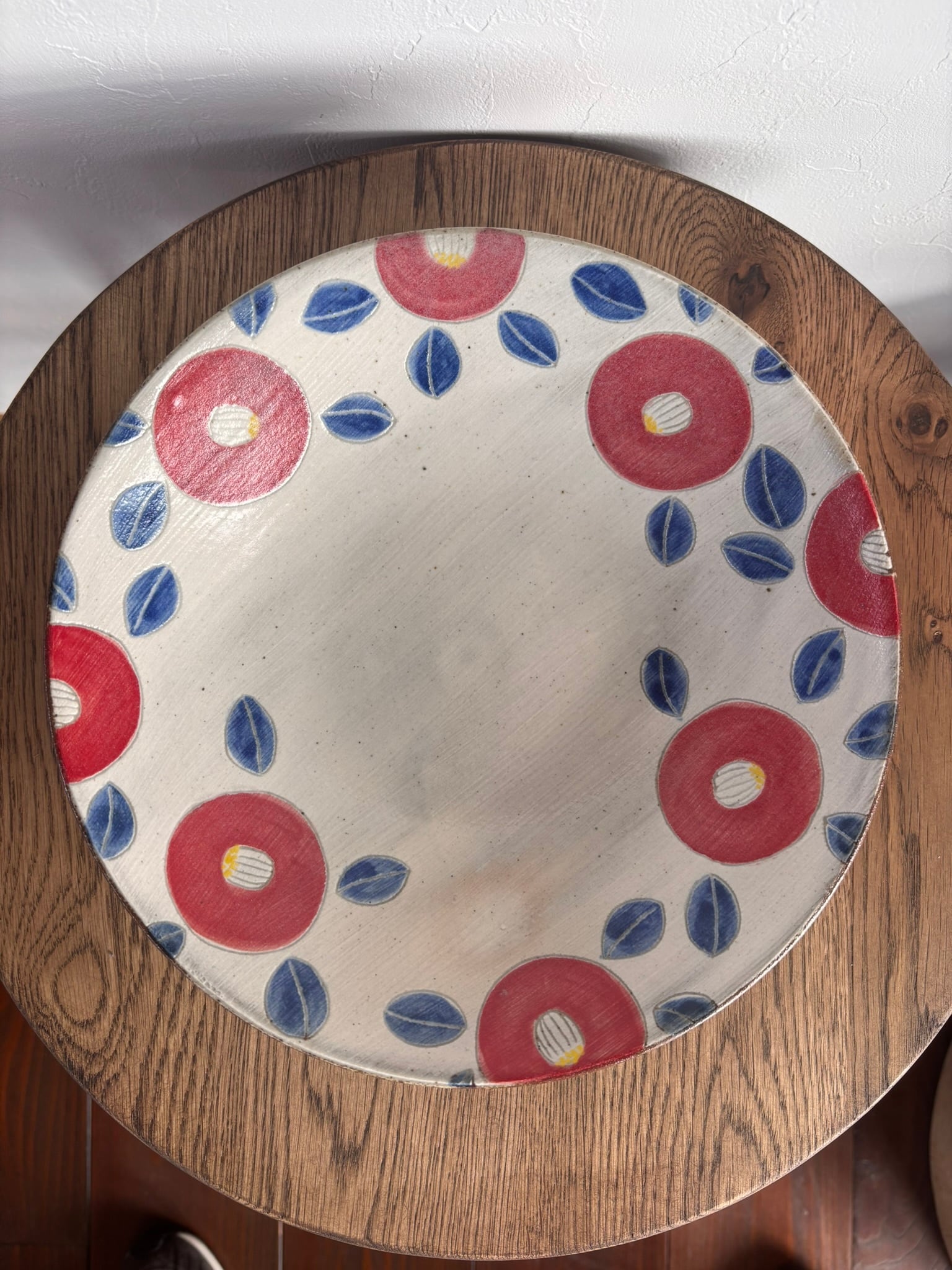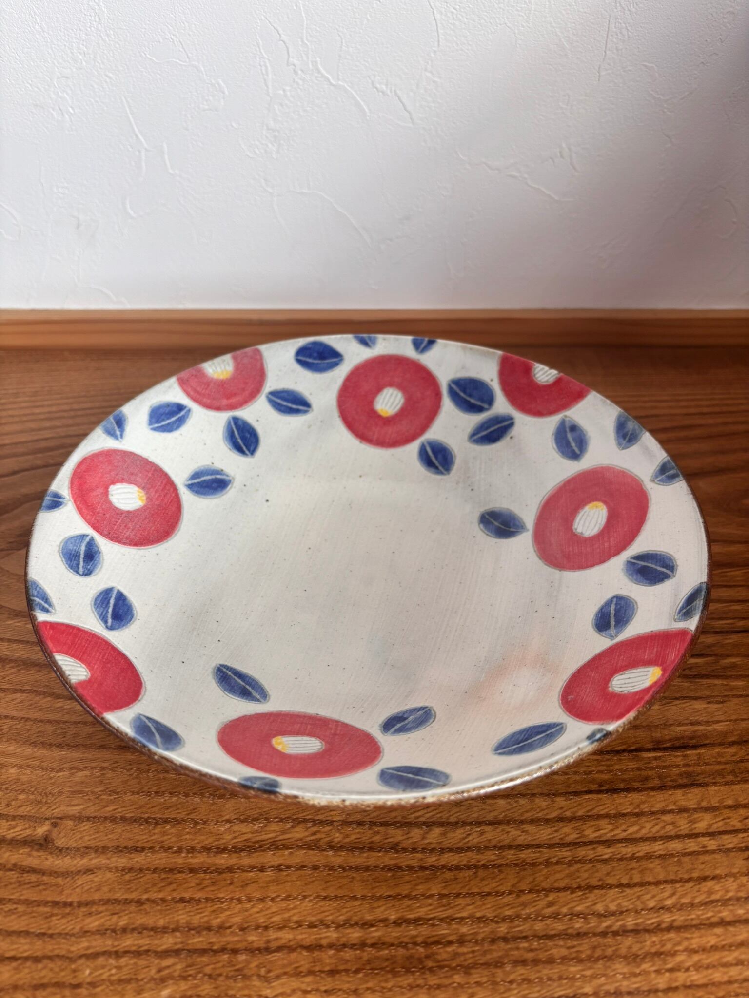 美しいつばきのデザインが特徴的なこの大皿は、サラダやパスタ、肉じゃがなどの煮物など様々なお料理にピッタリ。大きめのサイズ感は、来客用にも普段のお食事にも特別なものにしてくれそうです。