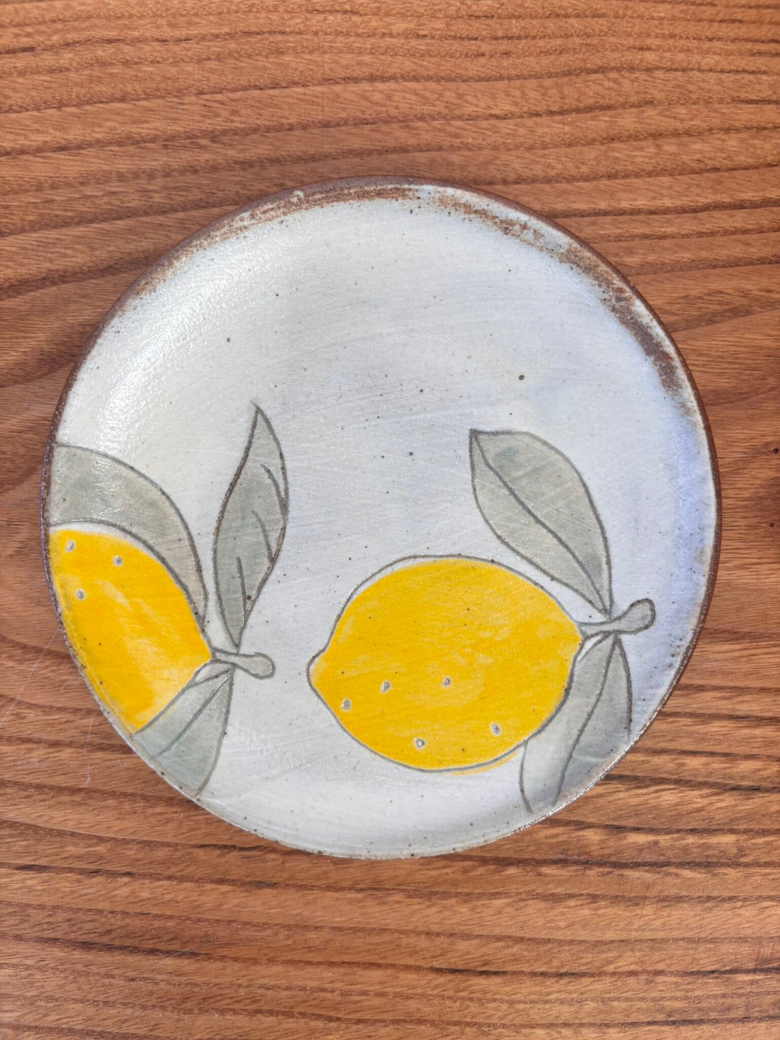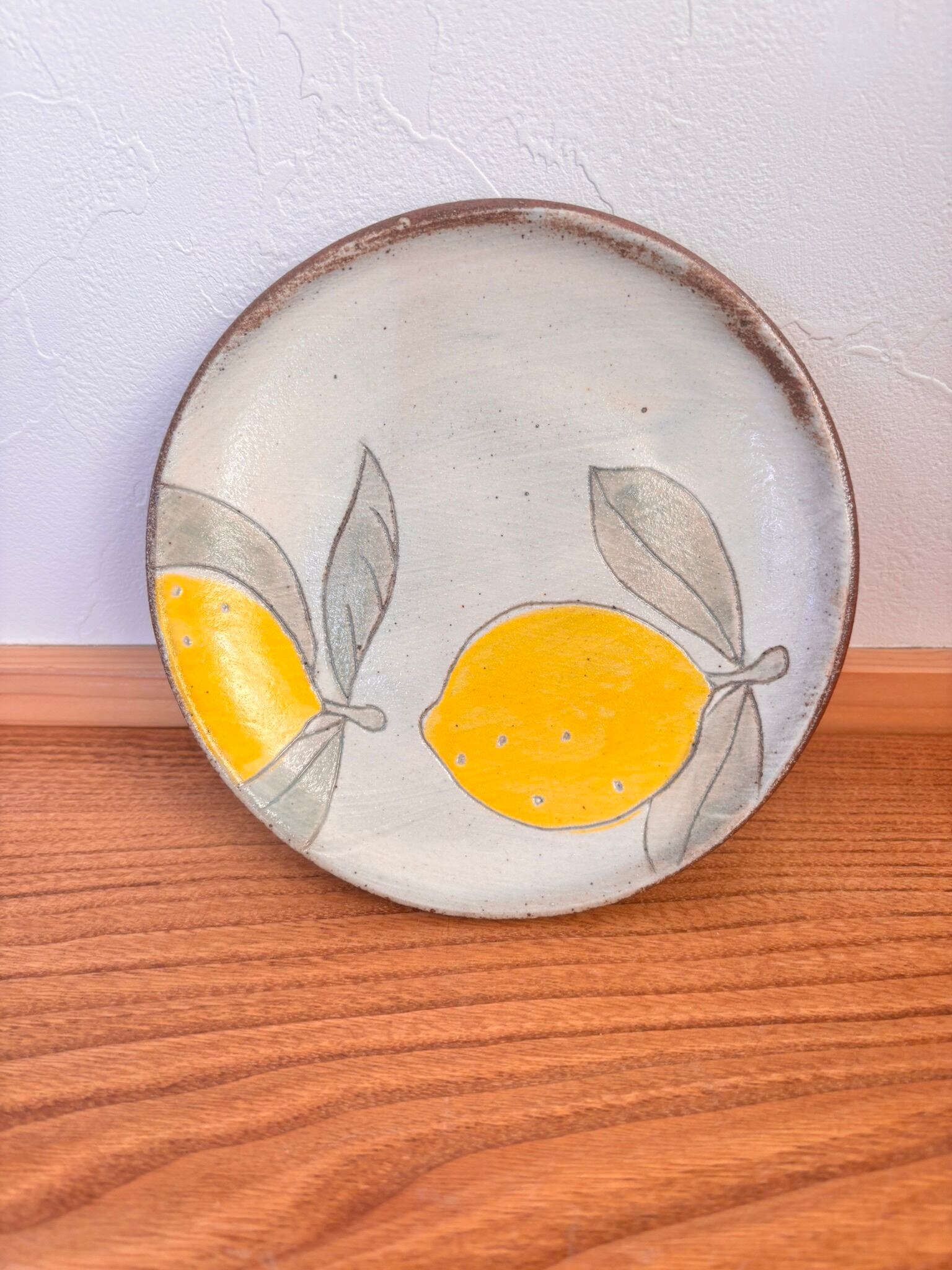 会津本郷焼の人気作家【樹ノ音工房】の加彩丸平皿中《レモン》です。