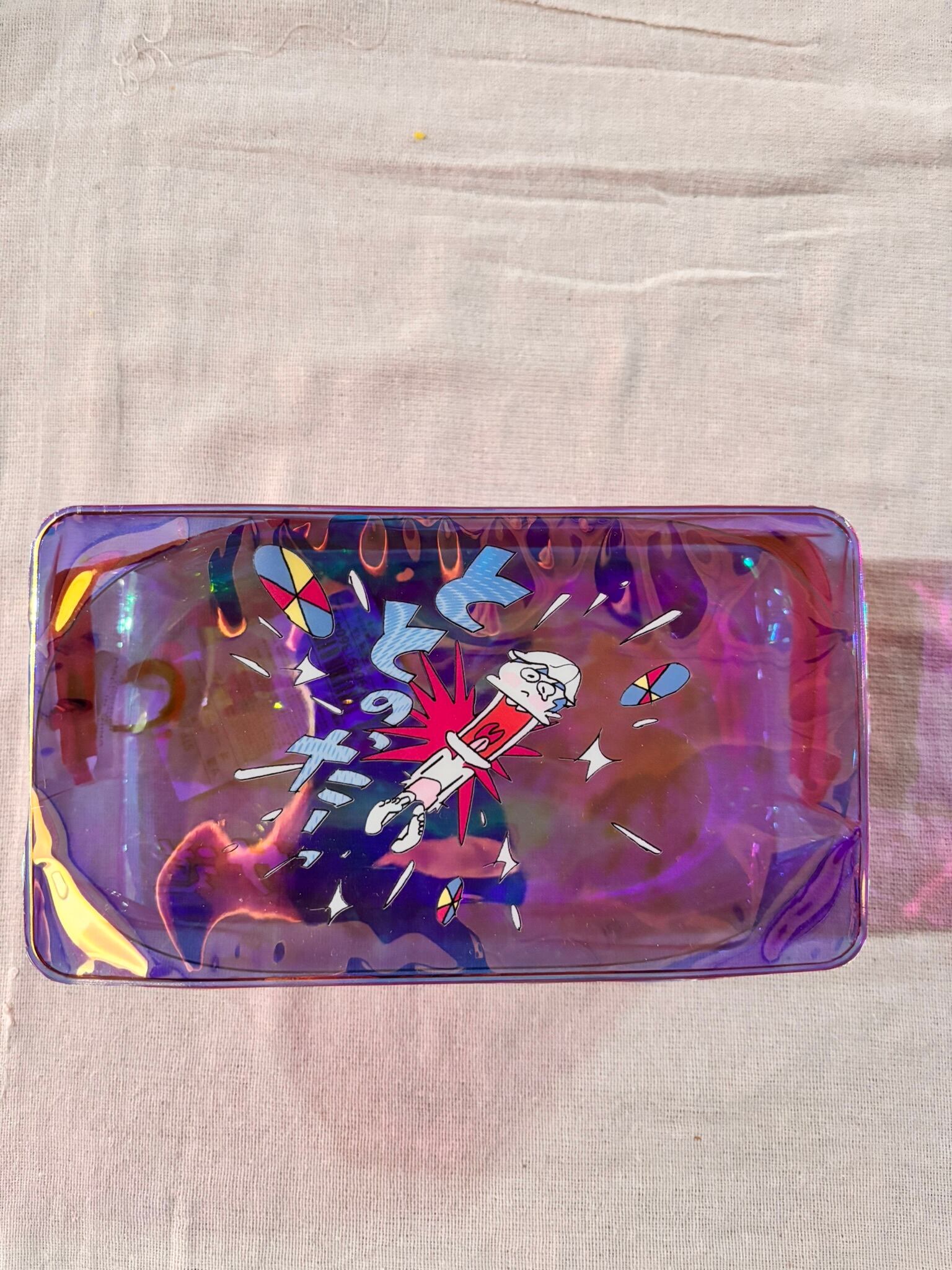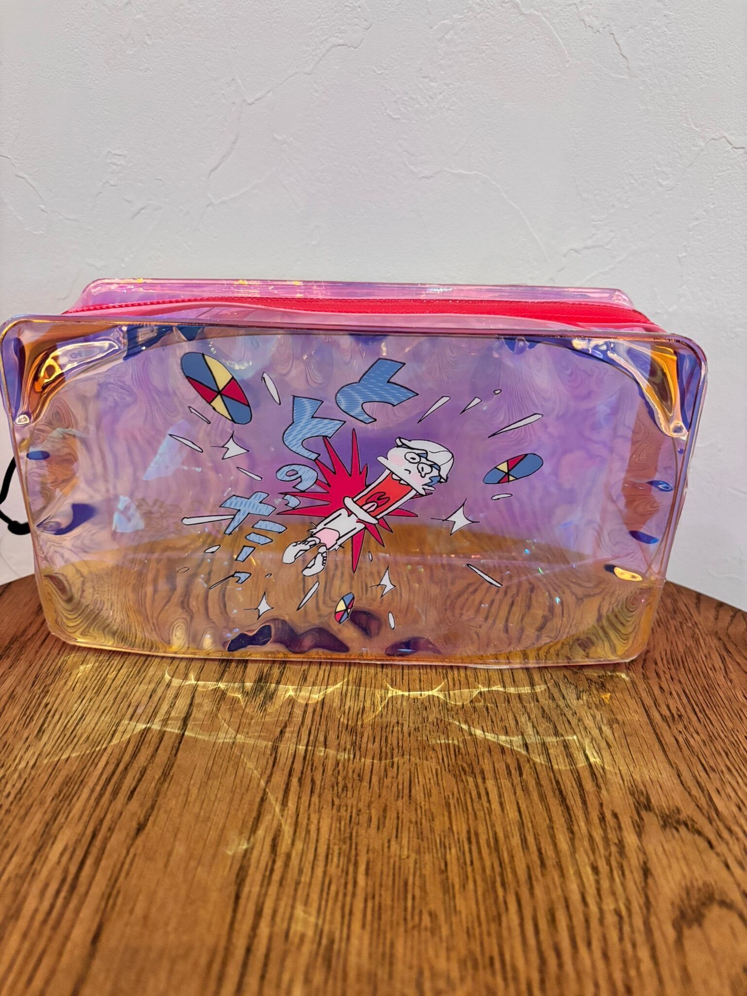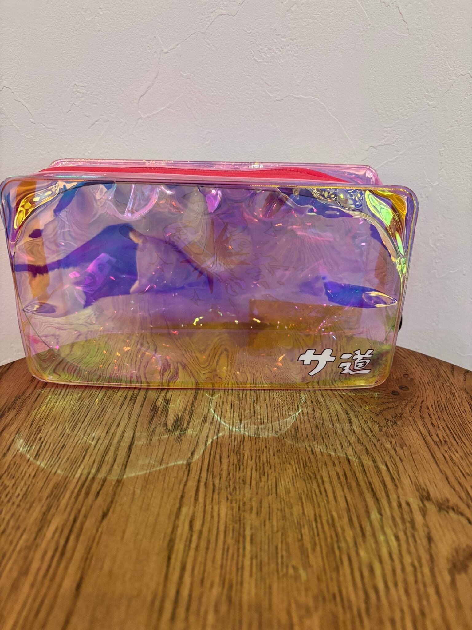 光の当たり具合でキラキラと色味が変わるオーロラポーチです。水の侵入を防ぐ止水ファスナータイプですのでサウナ後の浴室にもお持ち込みOK。