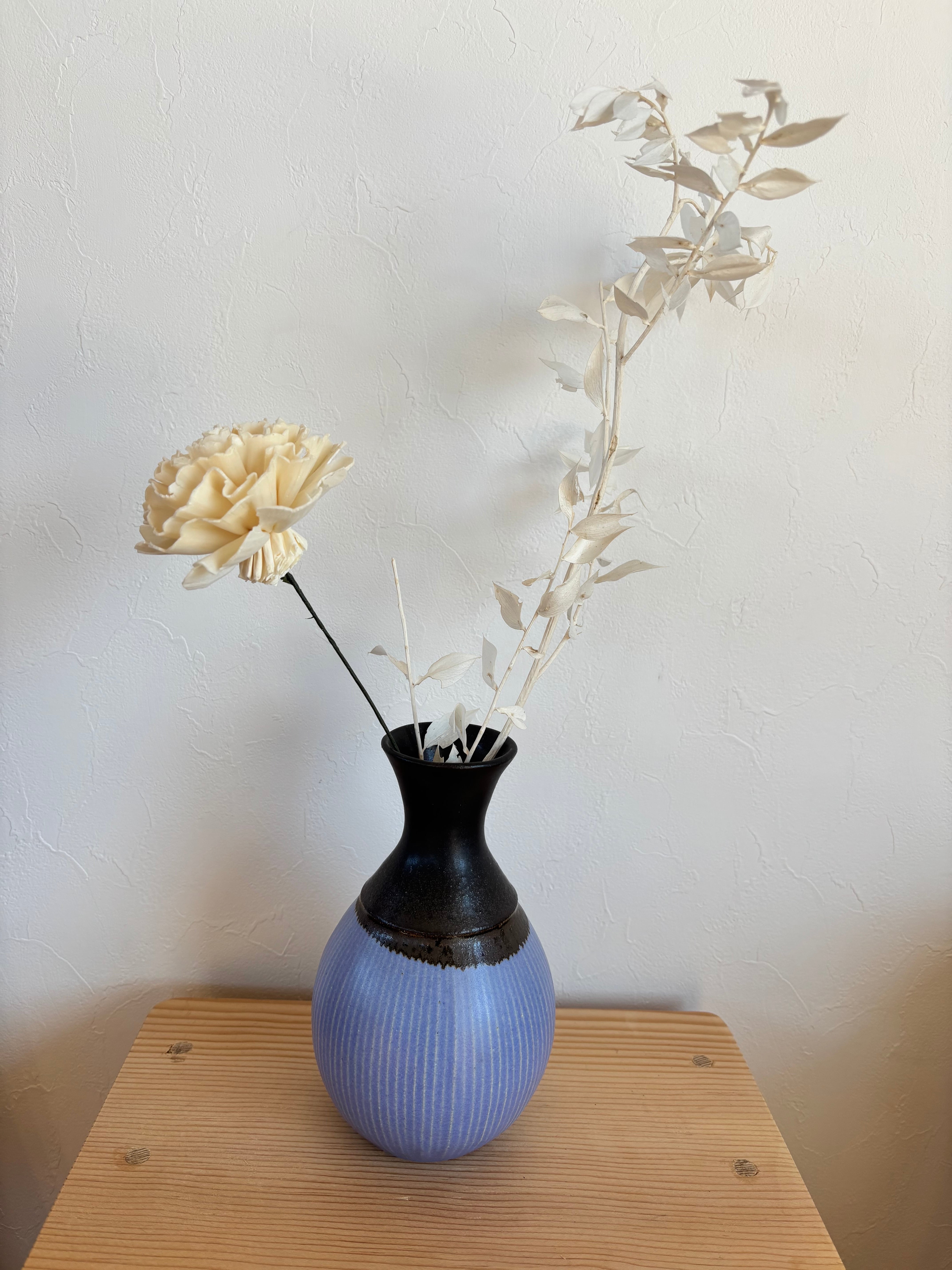 樹ノ音工房 色中黒しのぎ花器 会津本郷焼 K015