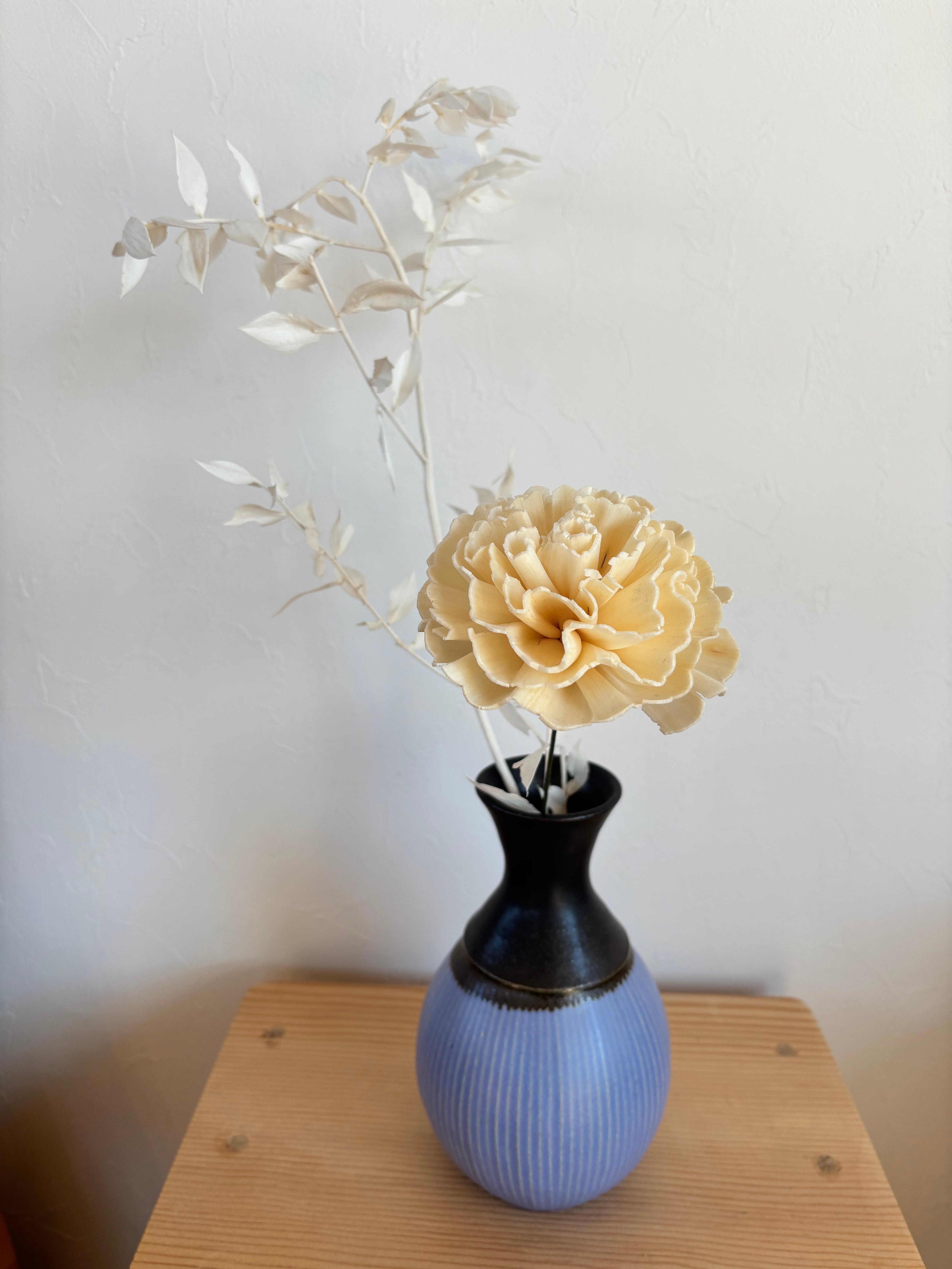 一つ一つ丁寧に手作業で作られた会津本郷焼の色中黒しのぎ花器です。この花器は、深みのある黒色と鮮やかなブルーのしのぎ模様のコントラストが特徴です。生花はもちろん、ドライフラワーやグリーンを飾るのにもぴったりなこの花器は、居間や玄関をおしゃれに演出してくれることでしょう。