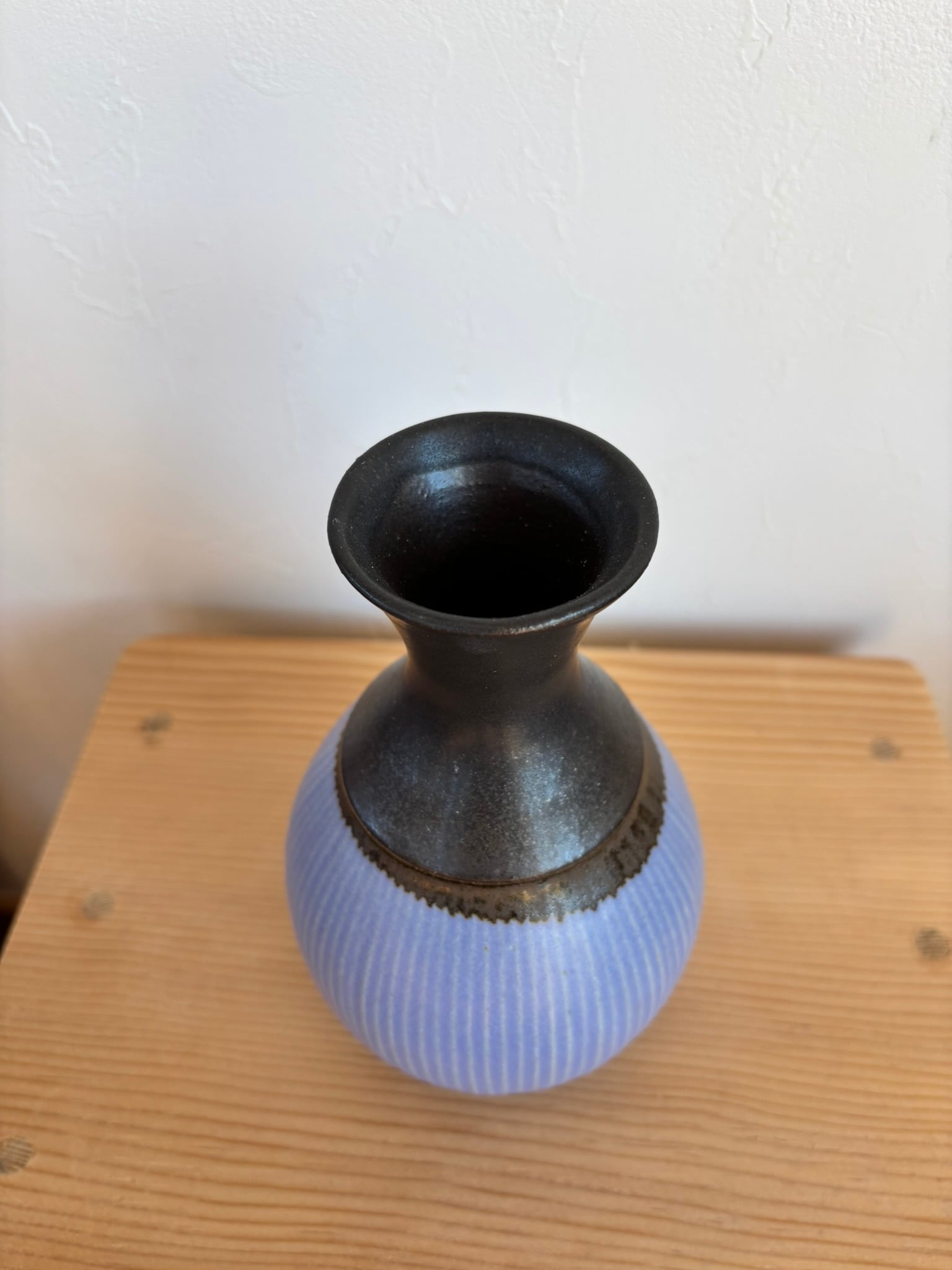 会津本郷焼の人気作家【樹ノ音工房】 色中黒しのぎ花器です!