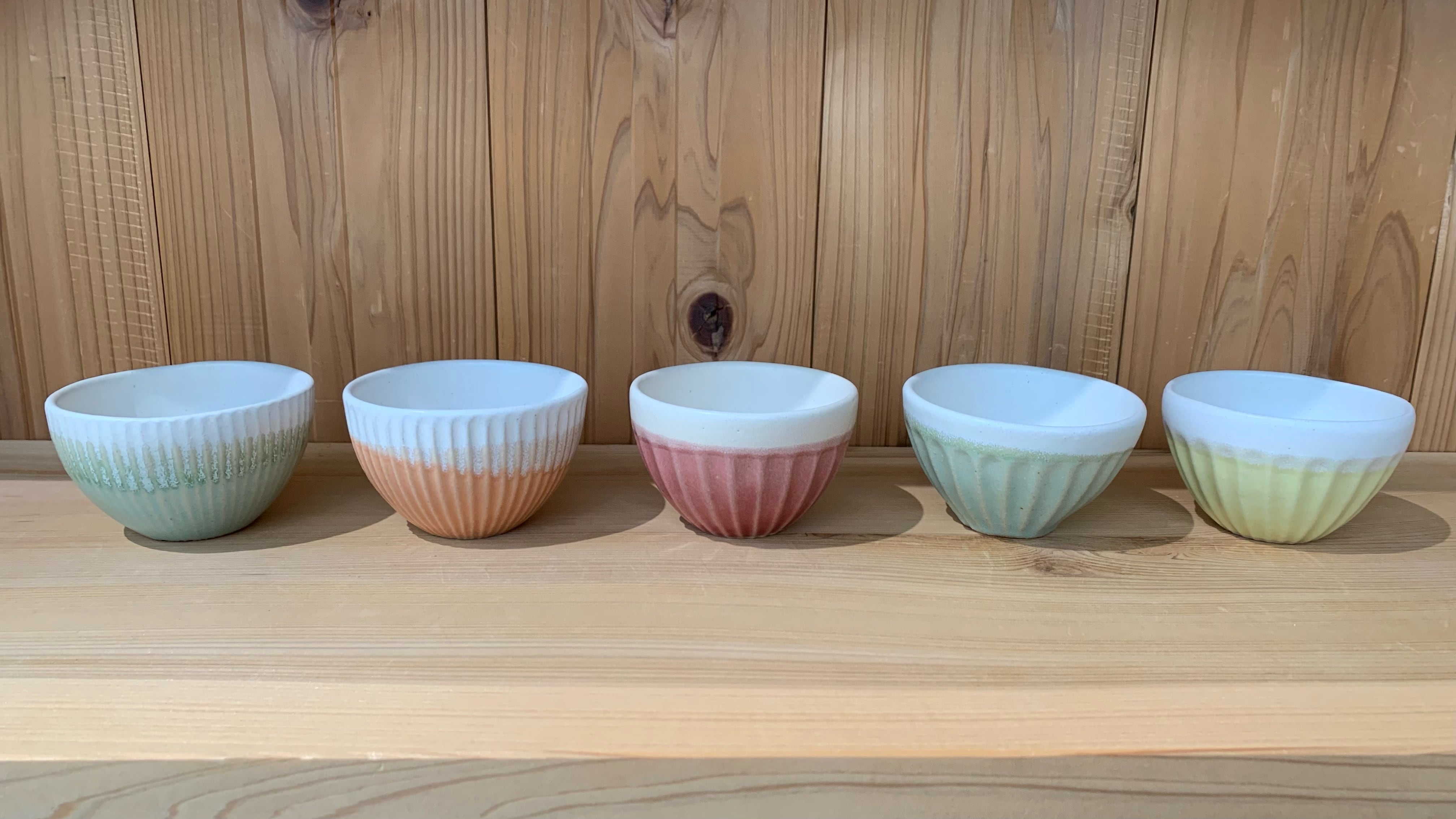 一つ一つ丁寧に手作業で作られたこの器は、鮮やかな色合いとカンナで削った「しのぎ」という技法で1本1本彫られたデザインが素敵です。カラフルな色合いは食卓に楽しさをもたらします。様々な料理に合わせやすいサイズ感で、ちょっとしたお惣菜や取り分け皿など日常の食事にはもちろん、特別な場面でのおもてなしにも活躍することでしょう。色違いでいくつかそろえるのもおすすめです!