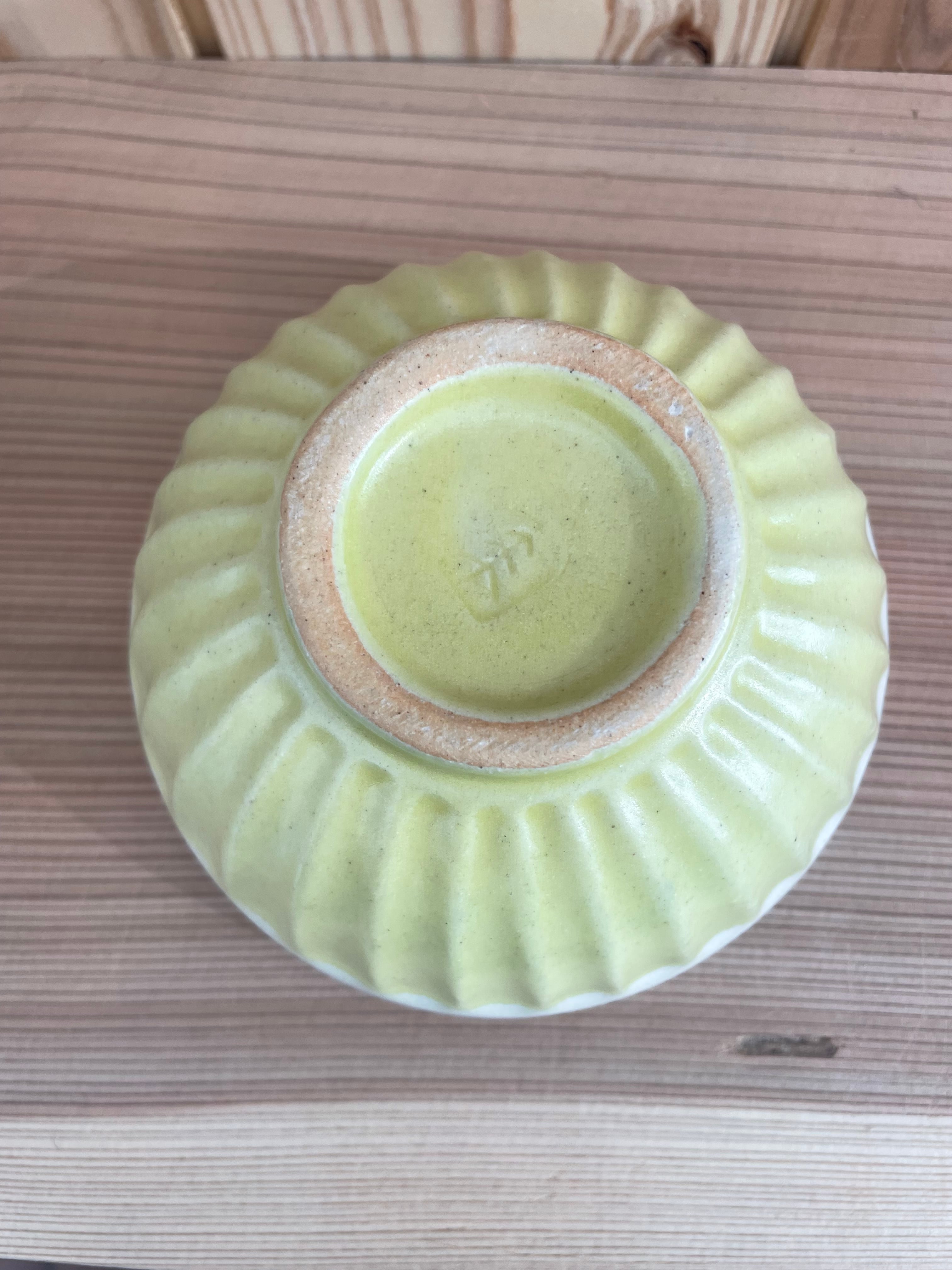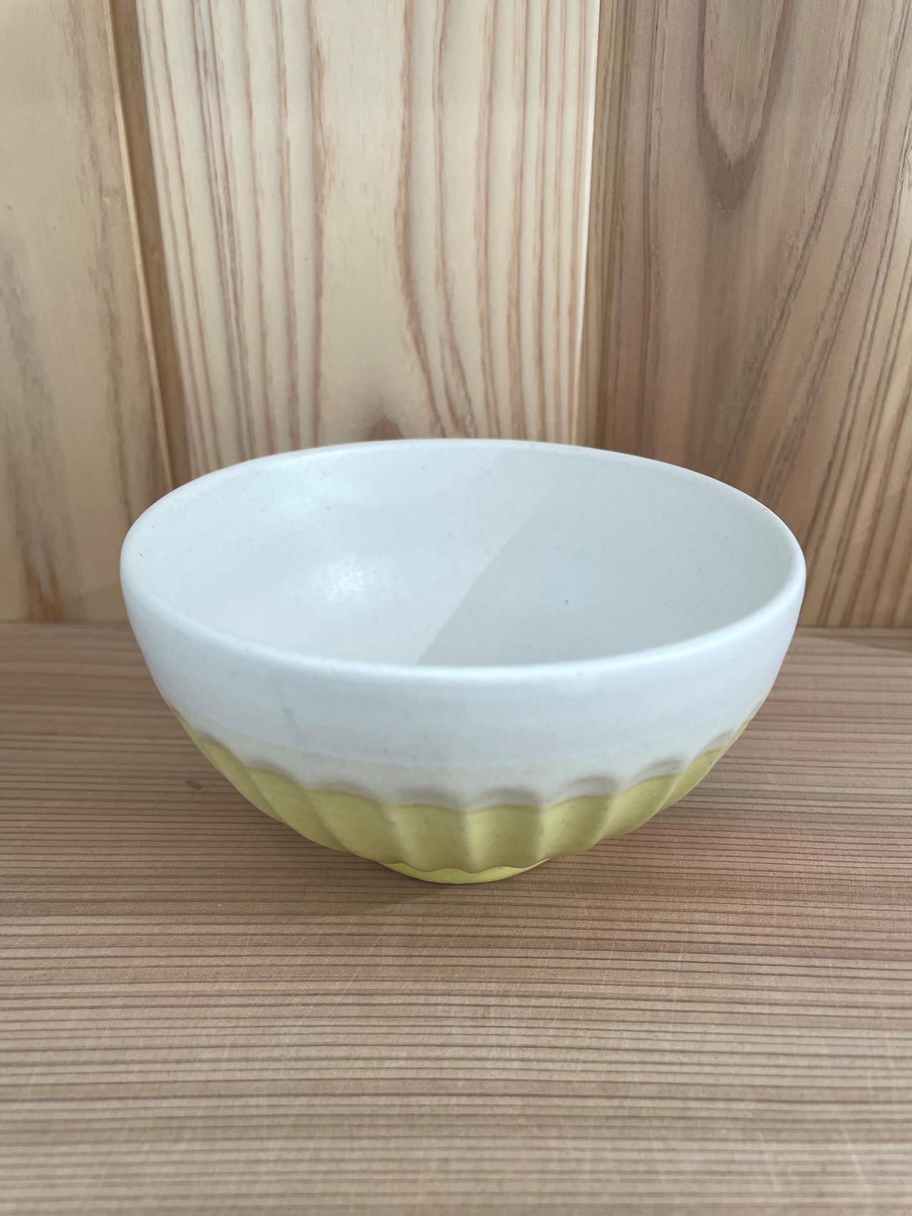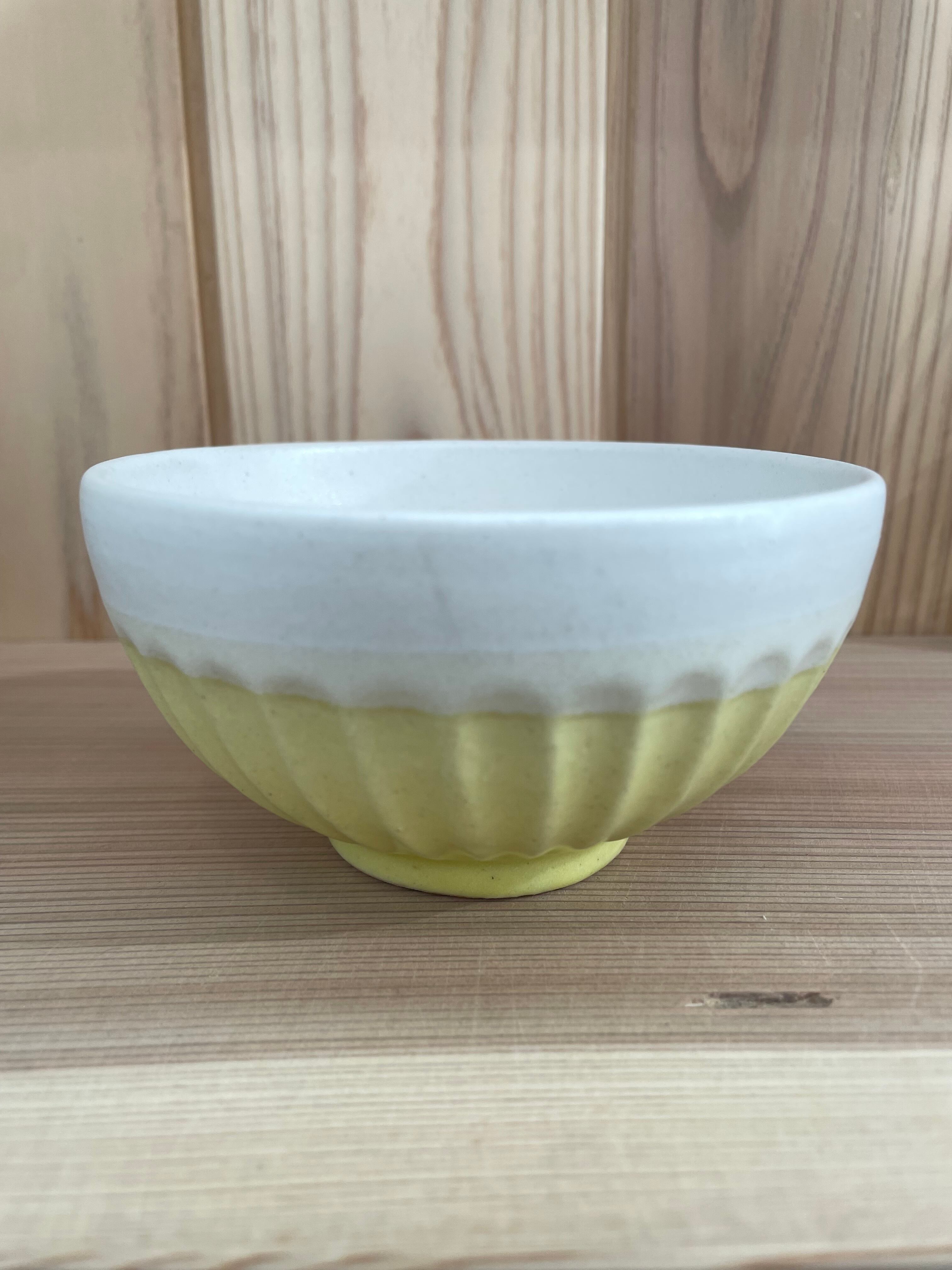 一つ一つ丁寧に手作業で作られたこの碗は、カンナで削った「しのぎ」という技法で1本1本彫られたデザインでパステルカラーとのツートンがとても可愛いお椀です。ご飯を食べるのがとても楽しくなりそう!たっぷりとした深さがあり手に取りやすいサイズです。